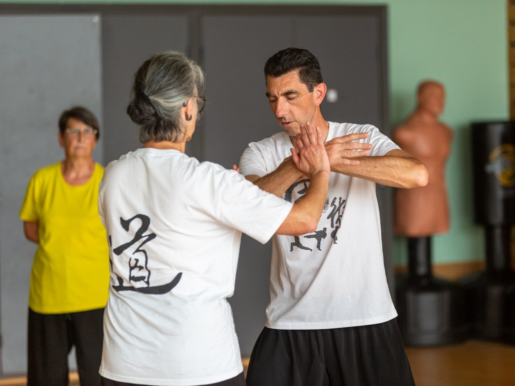 Le travail à deux, notamment avec les applications martiales et les poussées de mains (Tui Shou), est excellent pour développer la sensibilité, l’équilibre et la compréhension des mouvements dans un contexte plus dynamique et interactif.